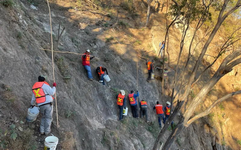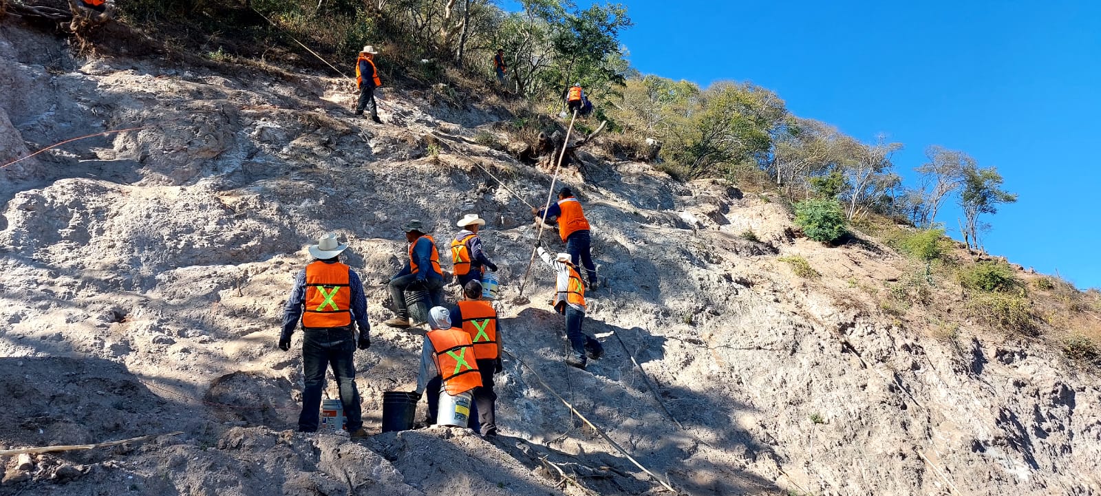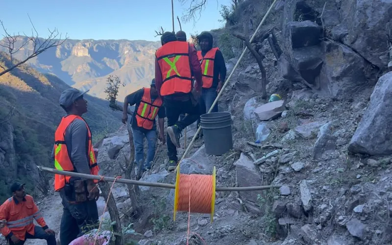 La Secretaría de Comunicaciones y Obras Públicas (SCOP), a través de la Dirección de Infraestructura Municipal, avanza en la construcción de los caminos Guadalupe Coronado-Mesa de Moribo, en el municipio de Urique, y Guadalupe Victoria-Santa Ana, en Chínipas, mediante esfuerzos de barrenación y voladuras.