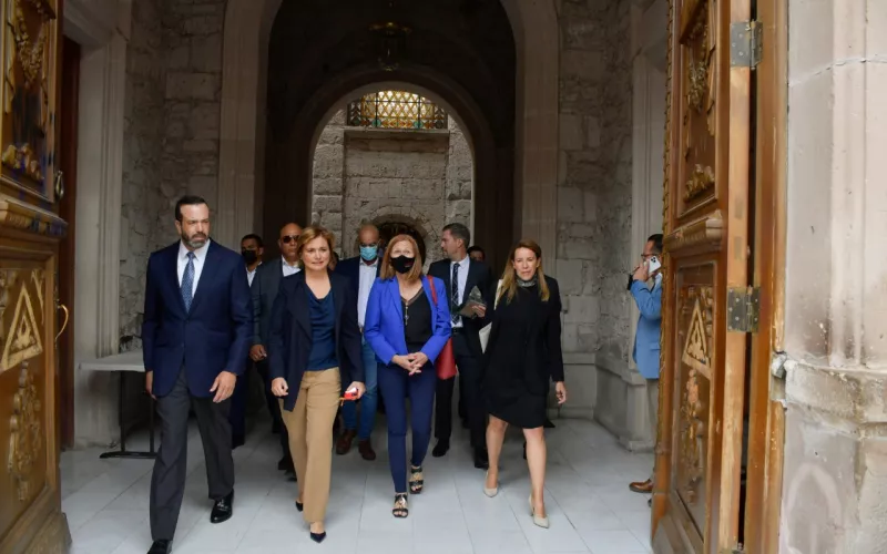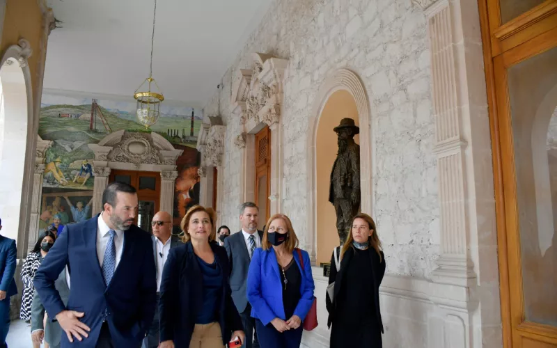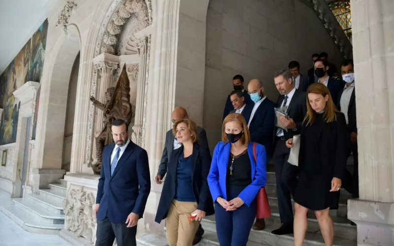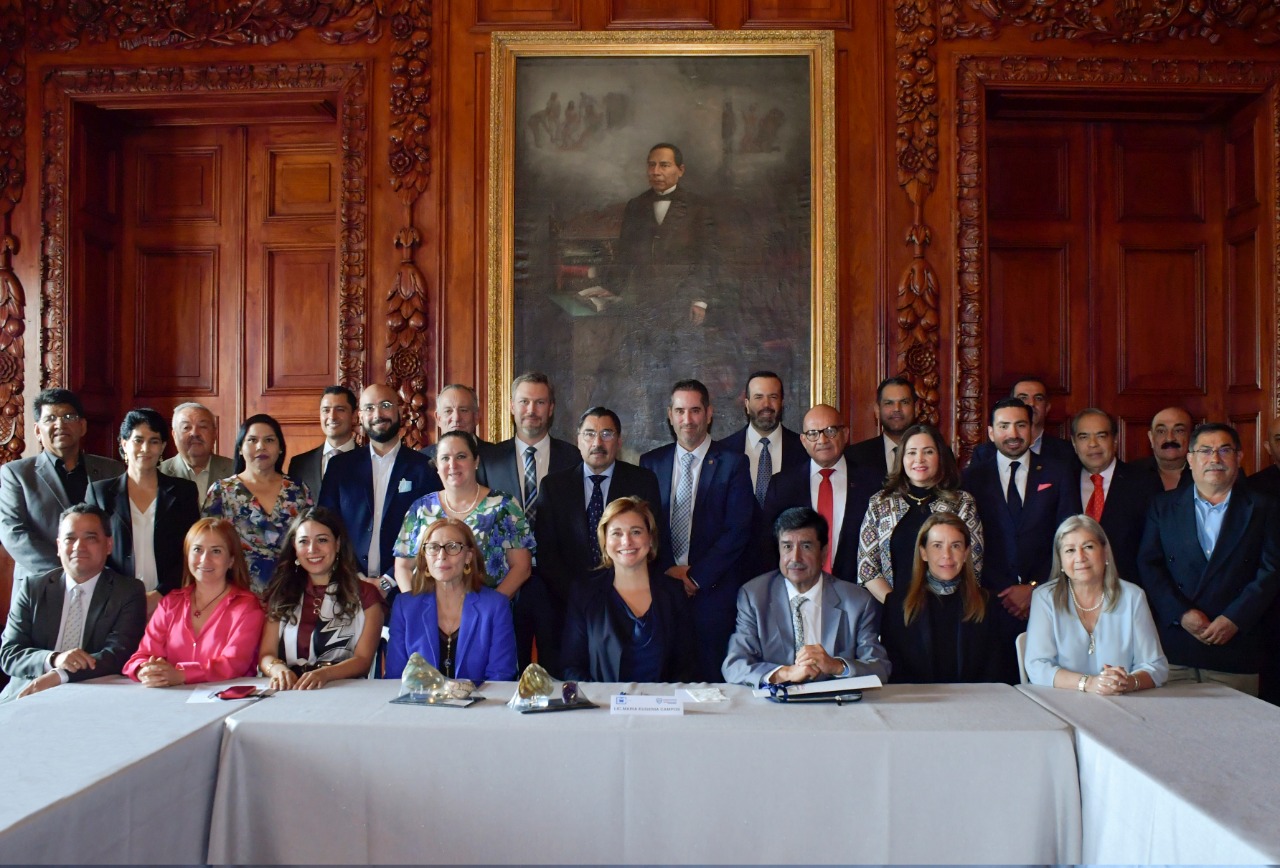 En compañía de la secretaría de Innovación y Desarrollo Económico, María Angélica Granados Trespalacios y el secretario de Seguridad Pública del Estado, Gilberto Loya Chávez, la Gobernadora recibió a José Jaime Gutiérrez Núñez, presidente de la CAMIMEX y a Karen Lucía Flores Arredondo, directora general de la misma; así como a la secretaria de Economía del Gobierno Federal, Tatiana Clouthier Carrillo, para llevar a cabo la sesión del consejo de esta Cámara y así posicionar a Chihuahua en la agenda de acciones a atenderse por parte de la Cámara Minera.