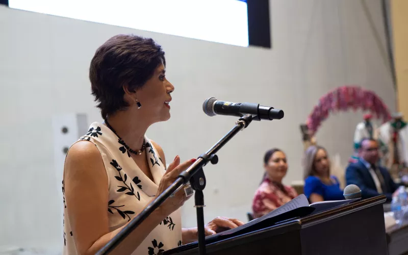 Durante su participación, María de los Ángeles Álvarez Hurtado, secretaria de la Función Pública, destacó la relevancia que la SFP atribuye a que los municipios estén al tanto de esta Reforma, ya que son el primer punto de contacto entre gobierno y sociedad, representando el rostro más cercano y palpable del Estado al brindar a los ciudadanos los servicios esenciales y materializar el progreso económico, la seguridad pública y el bienestar de la población.