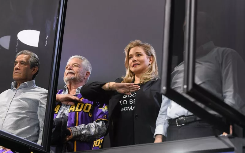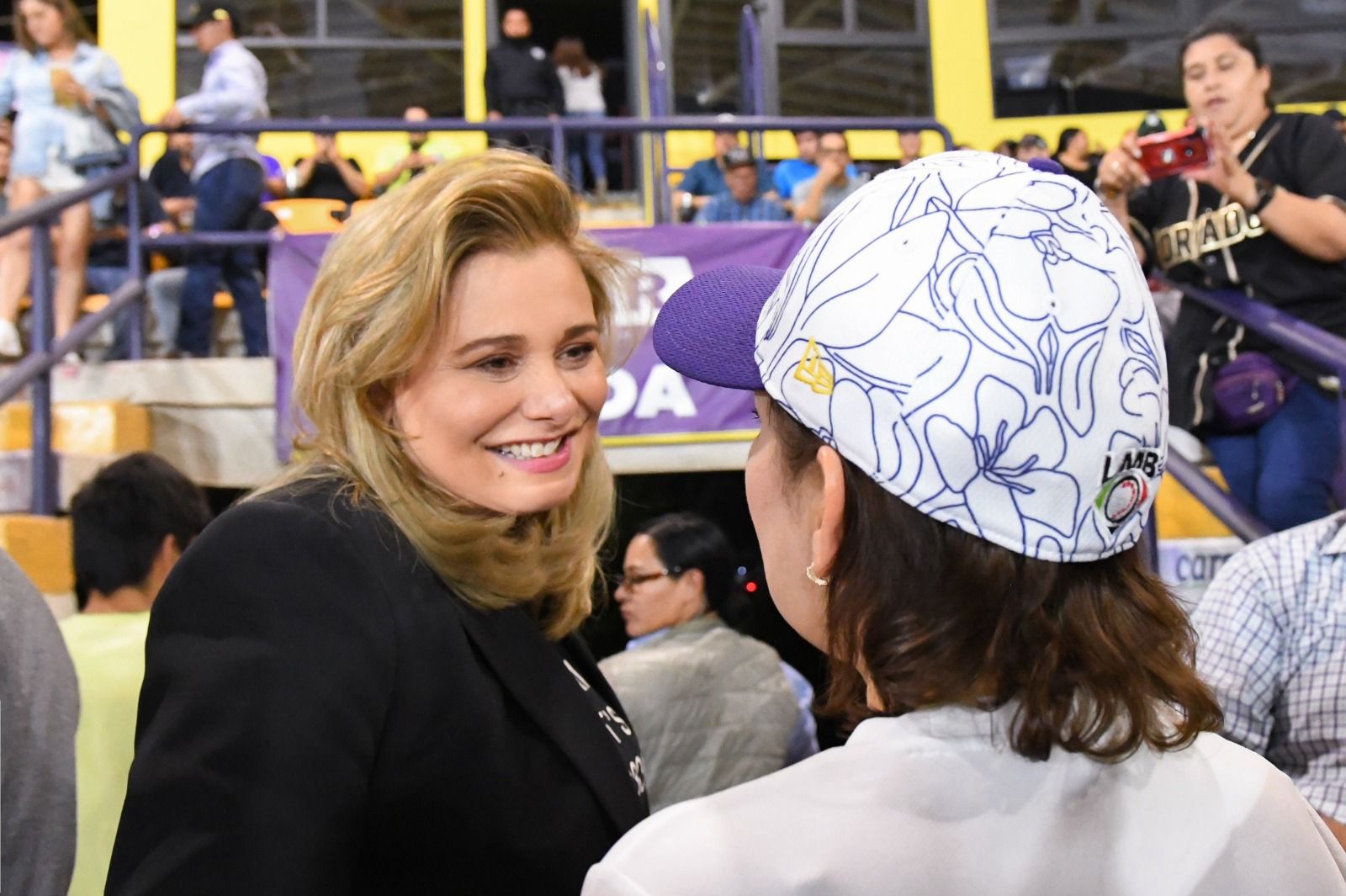 La Gobernadora del Estado, acudió como invitada de honor a la celebración del regreso del equipo Dorados de Chihuahua, a la Liga Mexicana de Beisbol (LMB), circuito al que vuelve después de 14 años de ausencia.