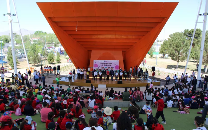 El Gobierno del Estado, a través de sus distintas dependencias, festejó a niñas y niños de escuelas de nivel preescolar y primaria de 10 planteles educativos de Ciudad Juárez, con premios, rifas y un espectáculo infantil en las instalaciones del Parque Central Poniente.