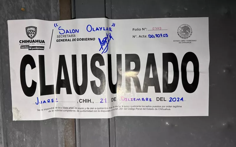 -Salón de eventos “Olaylar”, por no contar con permiso (Juárez)