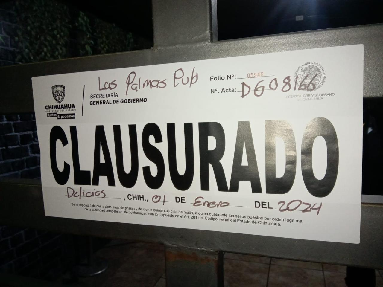 • Salón de baile “Palmas PUB” clausura por operar fuera de horario con empleados al interior.