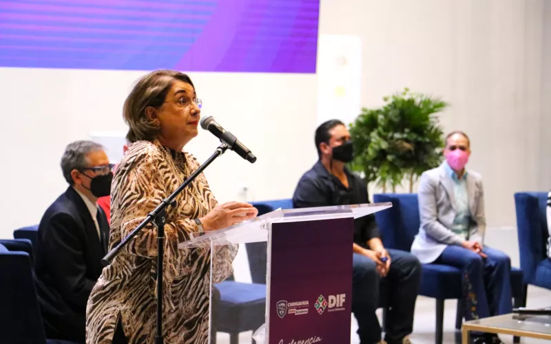La Presidenta del DIF Estatal, María Eugenia Galván Antillón y el director del DIF Estatal, Gabriel Eguiarte Fruns, presidieron el evento e hicieron entrega al concluir el mismo, de reconocimientos al ponente y a integrantes de su familia.