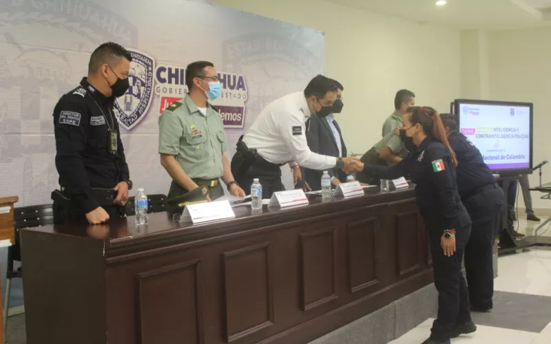 La ceremonia se realizó en las instalaciones de Pueblito Mexicano, en Ciudad Juárez y se contó con la presencia de autoridades de la Secretaría de Seguridad Pública del Estado (SSPE) así como con los 3 instructores de la Policía Nacional de Colombia que brindaron la capacitación a los elementos.