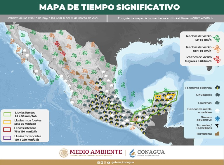 El pronóstico indica que para esta tarde noche las velocidades del viento se incrementarán en la zona noroeste con rangos de 53 km/h hasta los 59 km/h para los municipios de Janos, Casas Grades y Nuevo Casas Grandes. Para las 17:00 horas las ráfagas de viento serán de 72 km/h en el municipio de Manuel Benavides.