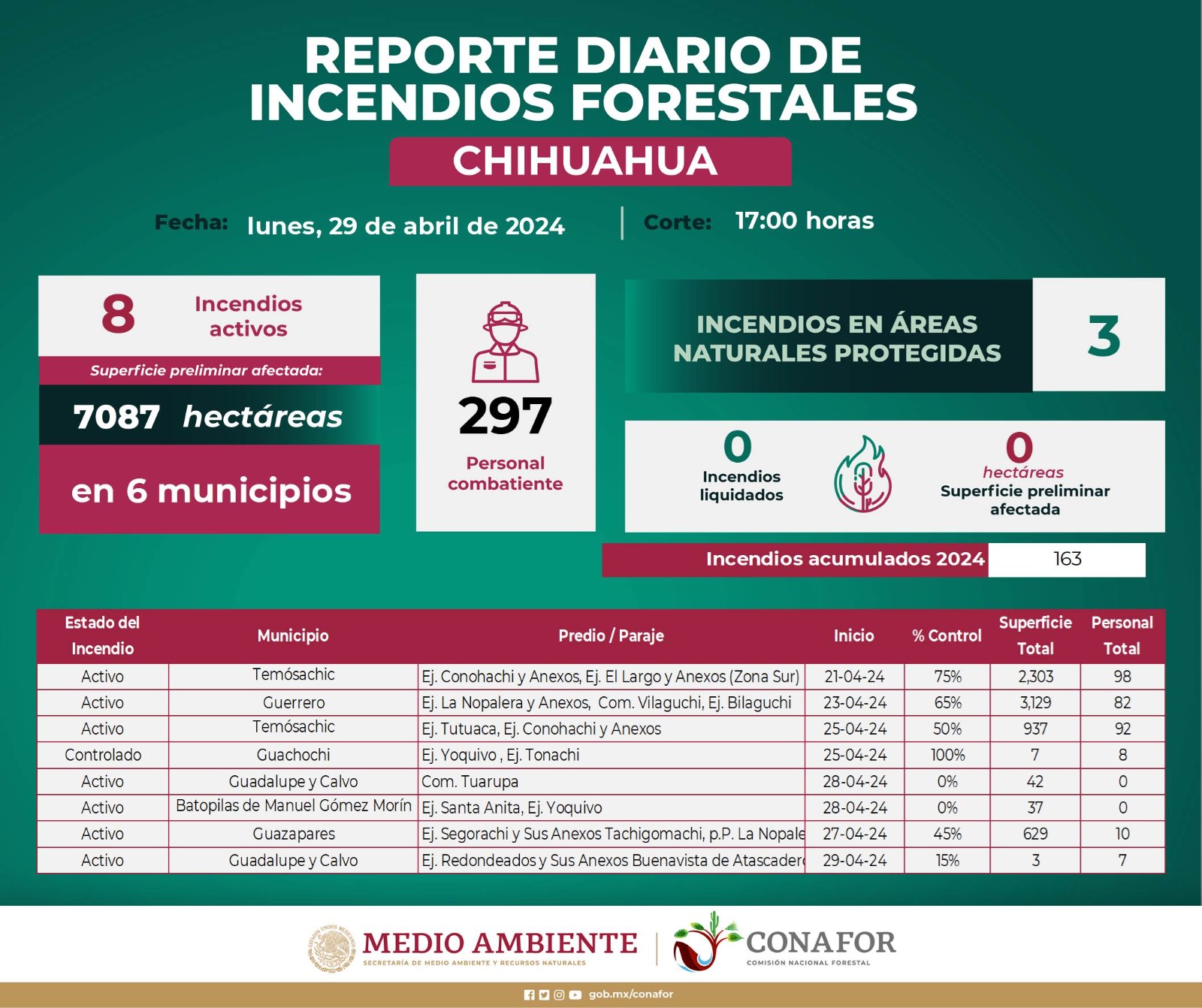 Por su parte, el director de Desarrollo Forestal de la SDR, dio a conocer que hacen frente a los incendios casi 300 brigadistas en 6 municipios del estado, donde se ha reportado la presencia de incendios por la Comisión Nacional Forestal (Conafor).