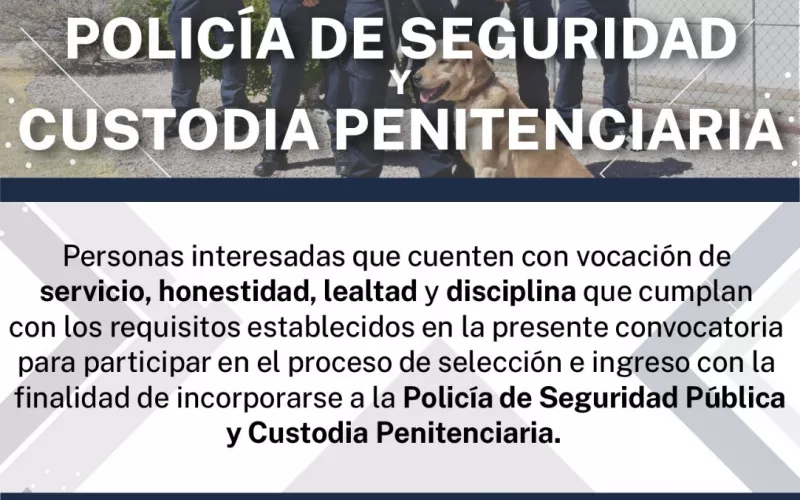 Cabe señalar que, en esta ocasión, la institución cuenta con lugares vacantes para las áreas de: Policía de Investigación; Agente del Ministerio Público y Policía de Seguridad y Custodia.