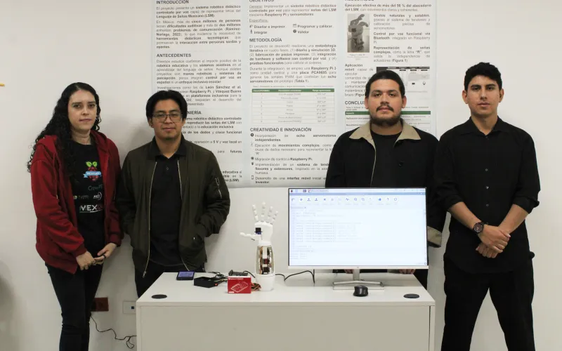 Estudiantes de Ingeniería en Mecatrónica de la Universidad Tecnológica Paso del Norte (UTPN), desarrollaron un sistema robótico didáctico controlado por voz para representar la Lengua de Señas Mexicana (LSM).
