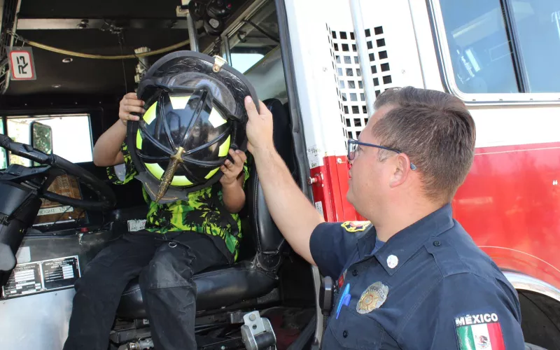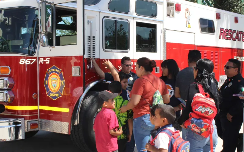 El cuerpo de bomberos, también estuvo presente con una bombera equipada, donde las niños y niños se tomaron fotografías del recuerdo.