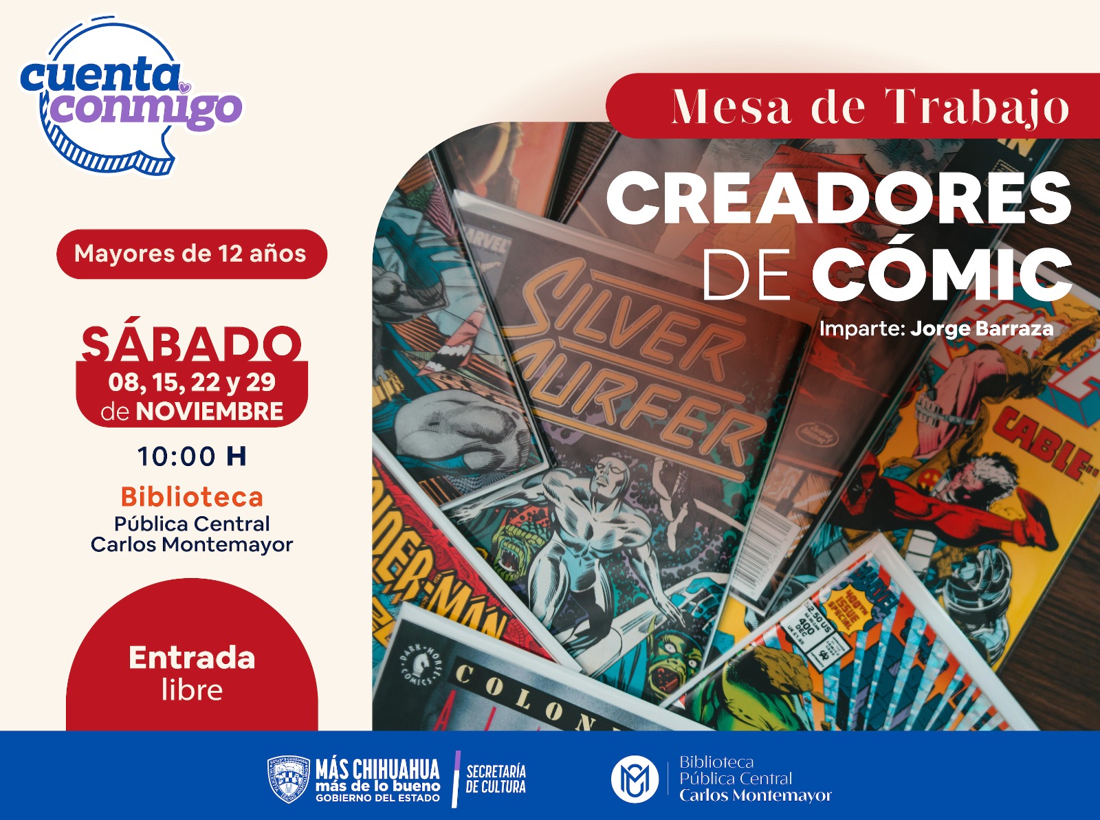 Los sábados 15, 22 y 29 de noviembre, a las 10 de la mañana, Jorge Barraza invita a niñas y niños mayores de 12 años a adentrarse en el mundo de los cómics, con el taller de creación de los mismos.