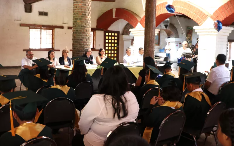 En la ceremonia de graduación estuvieron presentes, el director general del Desarrollo Juvenil del Norte (DJN), Pbro. Ernesto Hernández Ruiz, el Pbro. Alejandro Ramírez; el director ejecutivo de DJN, Carlos Aarón Rodríguez Tejada y la directora de la Fundación Rosario Campos, María Isela Valadez Flores.