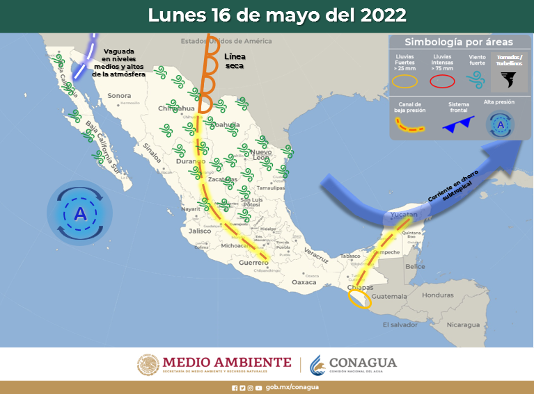 Con base en la información emitida por el Servicio Meteorológico Nacional, la CEPC informa que debido a un sistema anticiclónico en niveles medios de la atmósfera, se mantendrá el ambiente de caluroso a muy caluroso en la mayor parte de la república mexicana, y extremadamente caluroso en el noreste y suroeste del territorio estatal.