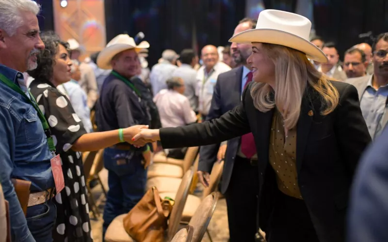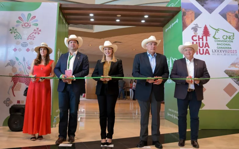 La Gobernadora Maru Campos encabezó en la ciudad de Chihuahua la ceremonia inaugural de la octogésima séptima Convención Nacional Ganadera en su edición 2023, que se desarrolla del 21 al 25 de mayo con la presencia de los principales productores del ramo en el país.