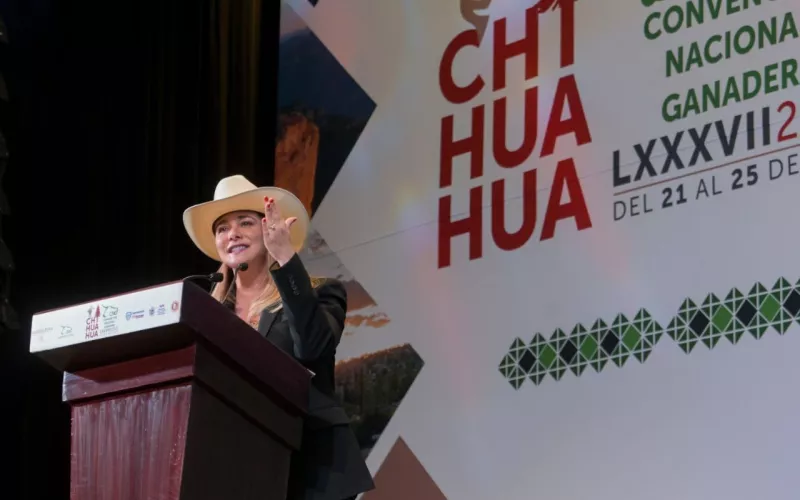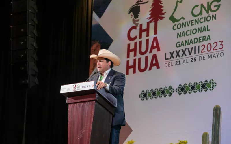“Hagamos esfuerzos para consolidar a nivel internacional al lugar que Chihuahua y México se merecen como productores de carne, exportemos nuestras marcas distintivas con sellos de calidad”, dijo la titular del Ejecutivo, quien recibió un reconocimiento por su apoyo en la realización de la Convención Nacional Ganadera 2023.