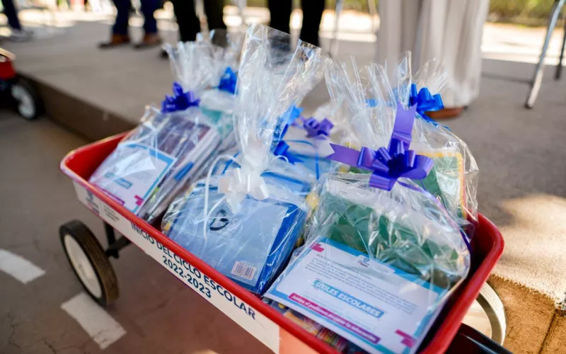 Finalmente, Maru Campos hizo entrega de paquetes de útiles escolares, libros de texto gratuitos y se dio seguimiento a la ceremonia protocolaria de honores a la bandera y el posterior timbre de entrada a clases.