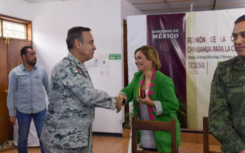 La gobernadora Maru Campos Galván encabezó la Reunión de Coordinación Estatal para la Construcción de la Paz, que tuvo sede en las instalaciones del 76º Batallón de Infantería, en Hidalgo del Parral.