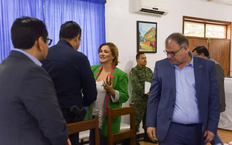 En esta reunión acompañaron a la Gobernadora, el general de Brigada Federico Solórzano Barragán, comandante de la 5ª Zona Militar; César Jáuregui Moreno, secretario general de Gobierno; general de Brigada Alfredo Salgado Vargas, comandante de la 42ª Zona Militar; Fernando Ávila González, secretario técnico y representante de la Secretaría de Seguridad y Protección Ciudadana; Roberto Javier Fierro Duarte, fiscal general del Estado y Gilberto Loya Chávez, secretario de Seguridad Pública Estatal.