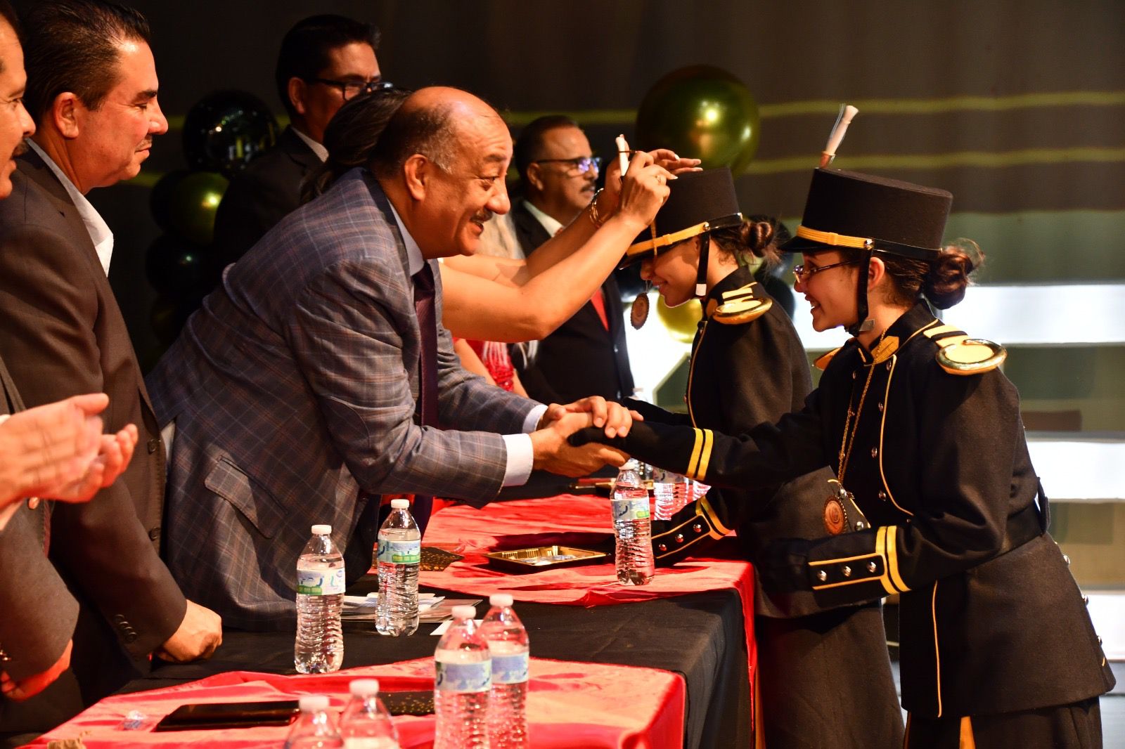 De igual manera, se otorgaron reconocimientos a las y los estudiantes con los mejores promedios de la generación 2018-2024; el primer lugar fue para Ashley Nicole Villarreal Valerio con un promedio de 9.9, la segunda posición la obtuvieron Mariana González García y Santiago Ramírez Vega, ambos con 9.7, y el tercer puesto fue para Santiago Castillo Santos con 9.6.