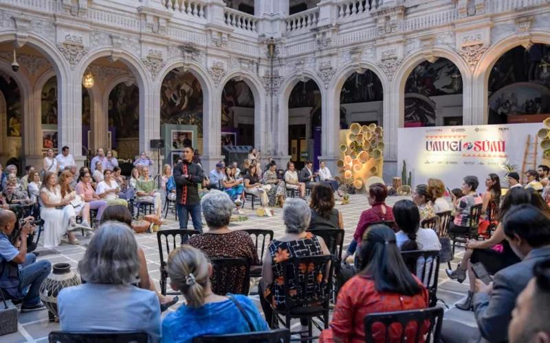 El Patio Central de Palacio de Gobierno se engalanó con la pasarela “Umugí Sumí” (Mujeres Cosiendo), en la que modelos rarámuri vistieron los atuendos creados por las artesanas chihuahuenses Bertha Vega Cruz y Francisca Santameño Palomo, en el marco de la conmemoración por el Día Internacional de los Pueblos Indígenas.