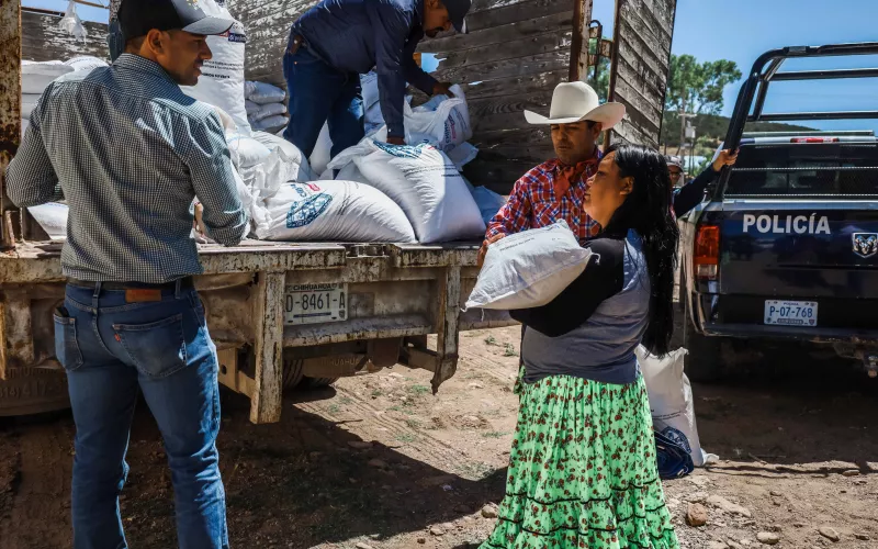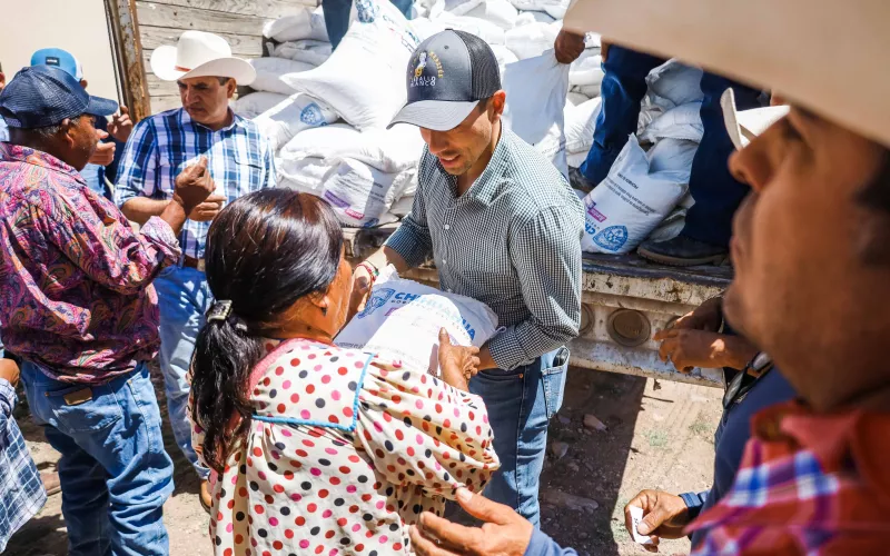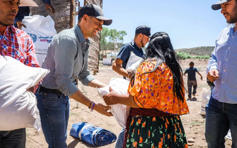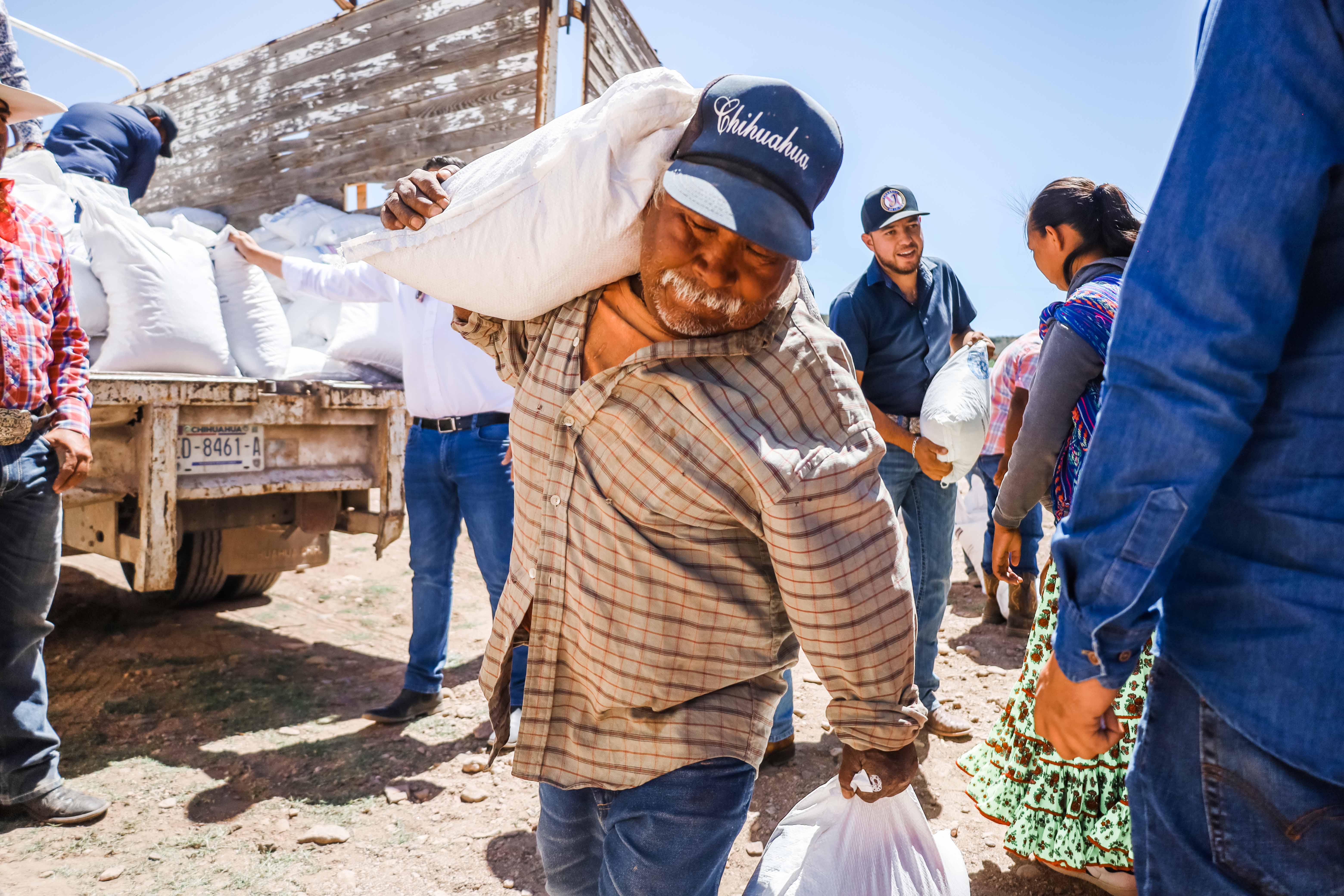 Encabezados por el secretario de Pueblos y Comunidades Indígenas, Enrique Rascón Carrillo; el alcalde, Javier Rodríguez, y los diputados locales Noel Chávez y Edgar Piñón, de los distritos 22 y 21 respectivamente, entregaron 350 paquetes de maíz y frijol en beneficio de la misma cantidad de familias.