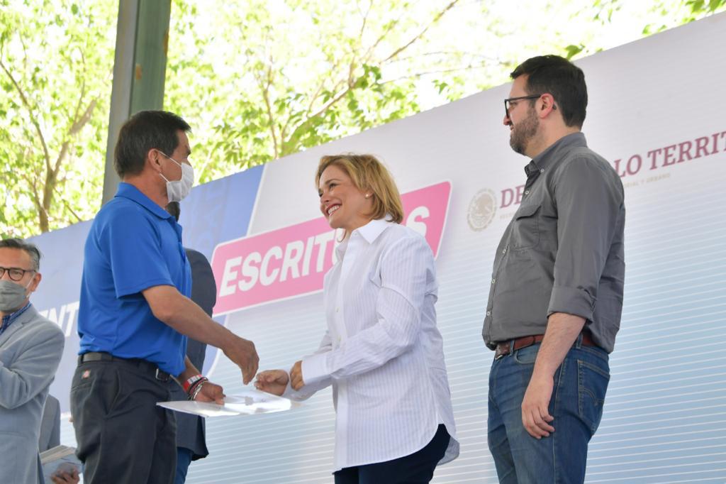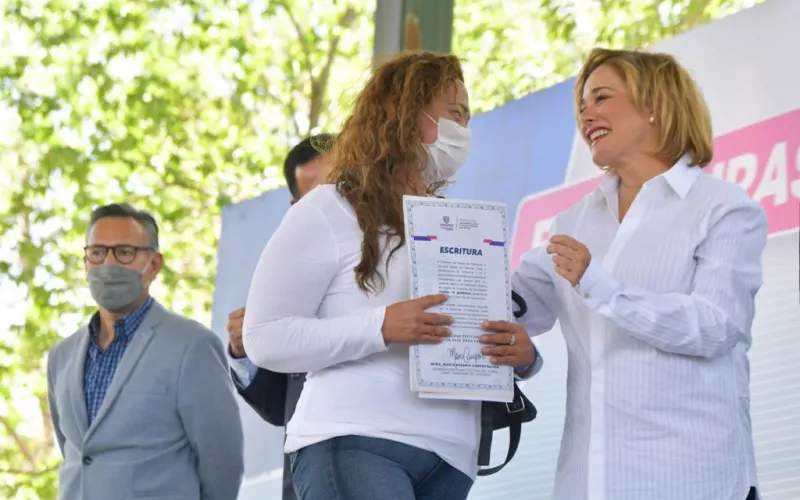“No se imaginan lo que este papel significa para mí, primero la seguridad de que nadie me la puede quitar, después la posibilidad de venderla o tramitar un crédito hipotecario y hasta la certeza de heredarla sin dejar problemas para mi familia. Quiero agradecer a la gobernadora Maru Campos y a todas las autoridades que están aquí por hacer realidad este sueño”, exteriorizó María del Socorro.