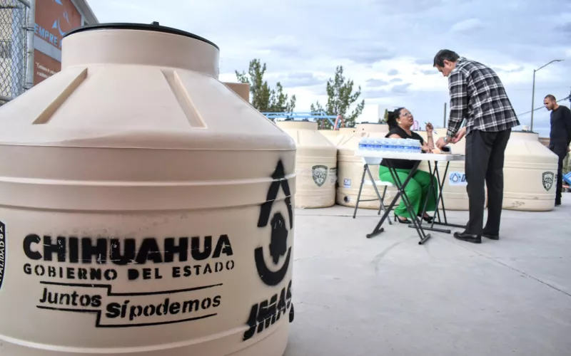 Sobre los tinacos para subsidiar a usuarios de casa habitación, el director ejecutivo de la JMAS Chihuahua, Alan Falomir, agregó que aún son más de 400 los depósitos con los que dispone el organismo, con un bajo costo de hasta 3 veces menor que en el mercado convencional.