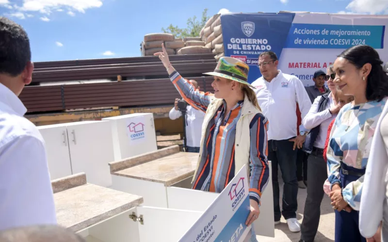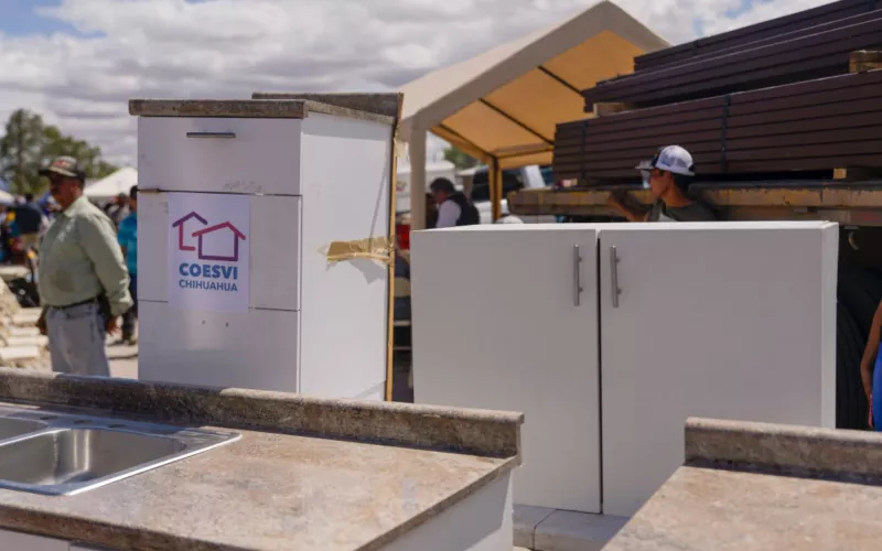 Como parte del evento, entregó una cocineta a miembros de la familia Harrison Márquez, quienes viven en condición de vulnerabilidad, apoyo que les fue entregado a través de la Comisión Estatal de Vivienda, Suelo e Infraestructura de Chihuahua (Coesvi).