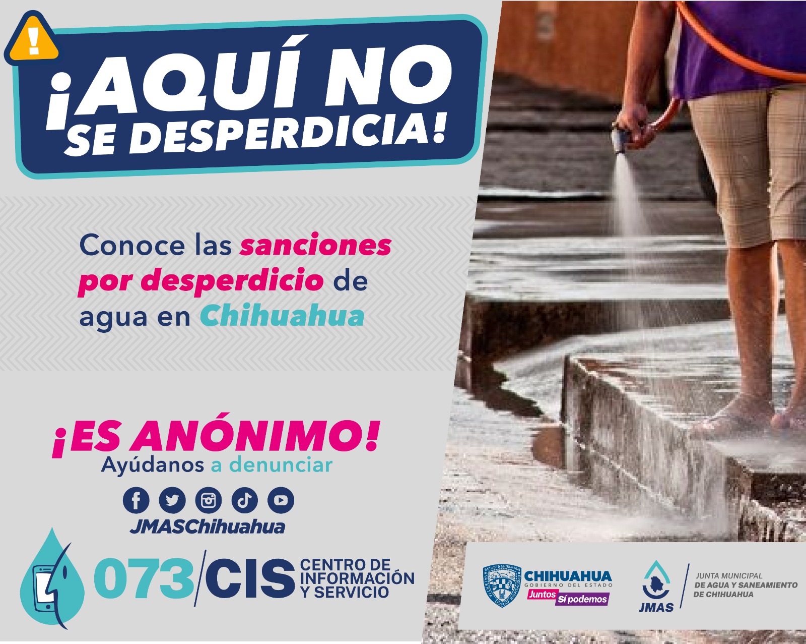 La Junta Municipal de Agua y Saneamiento Chihuahua (JMAS), exhortó a la ciudadanía a hacer buen uso del agua potable en esta temporada de calor ya que se tiende a incrementar considerablemente el consumo, por lo que es necesario cuidarla para cubrir las necesidades de la población.