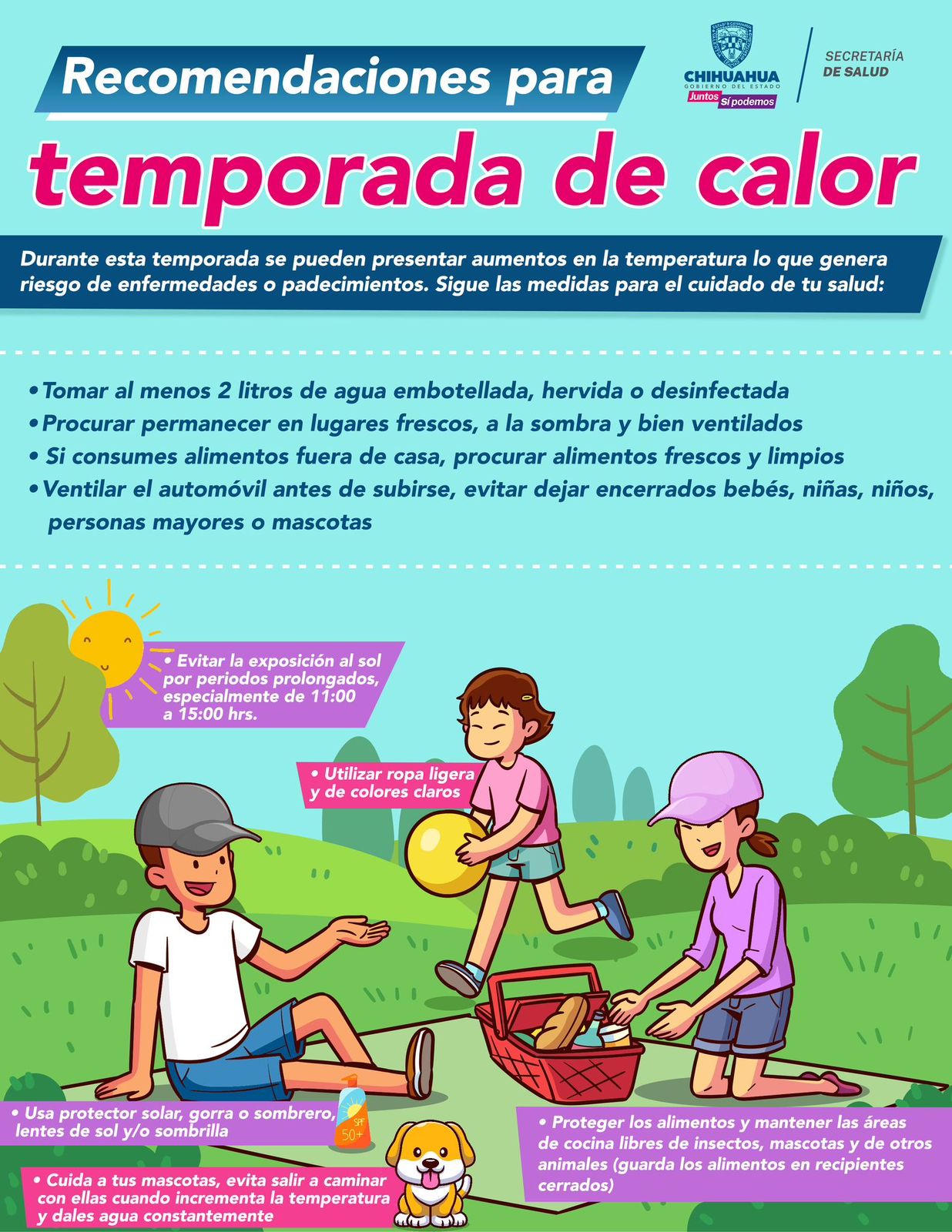 La Secretaría de Salud exhorta a la ciudadanía a seguir las acciones preventivas para evitar padecimientos como el golpe de calor, la deshidratación y las quemaduras solares, que se pueden presentar por la exposición al sol o las altas temperaturas.