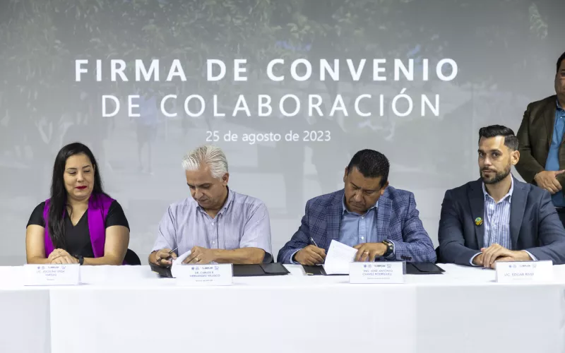 La firma estuvo cargo de ambos directivos con la presencia de la regidora Joceline Vega Vargas como parte de la comisión de desarrollo urbano del cabildo.