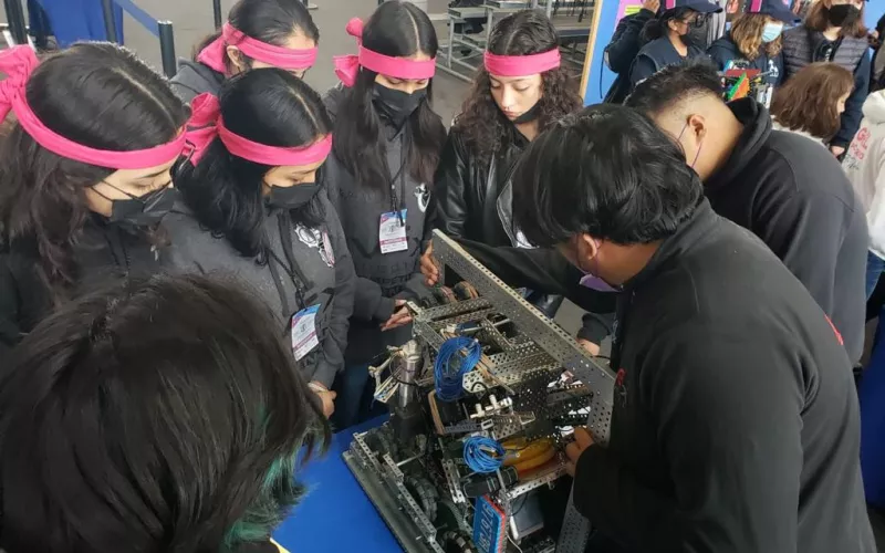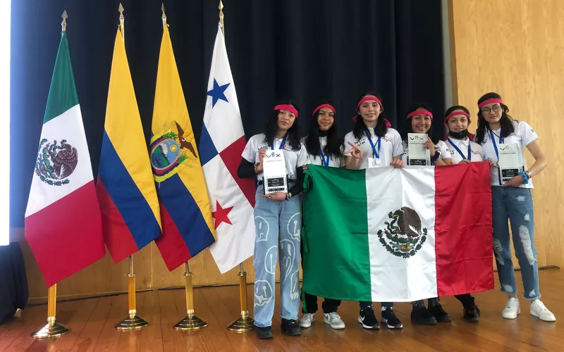 Las seis alumnas del plantel 11 del CECyTECH, Ciudad del Conocimiento de Ciudad Juárez con el apoyo del coach, Gabriel Salazar Chávez, destacaron al obtener tres galardones: Campeonas de Robot Skills, Campeonas de Excelencia y Campeonas de Torneo.