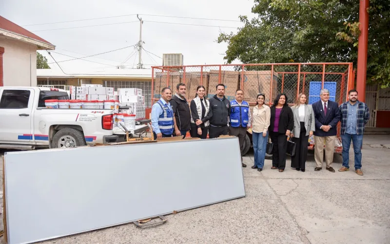 El representante de la gobernadora Maru Campos en Juárez, Carlos Ortiz, señaló que a través de estos materiales se busca impulsar el desarrollo educativo en la región mediante la renovación y el equipamiento de los planteles escolares, garantizando espacios óptimos, seguros y funcionales que favorezcan la formación integral de las y los estudiantes.