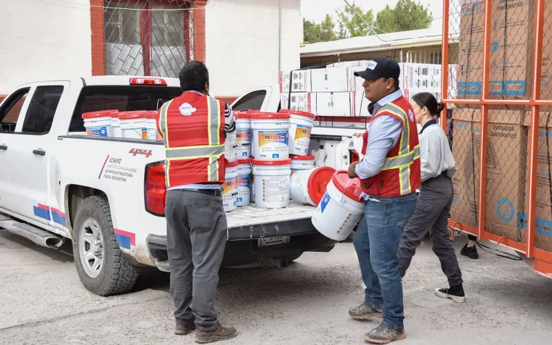 La entrega incluye materiales que mejoran la calidad de estancia de estudiantes y docentes, como aires evaporativos, calentones, mesas de trabajo, butacas, pizarrones, impermeabilizante y pintura.