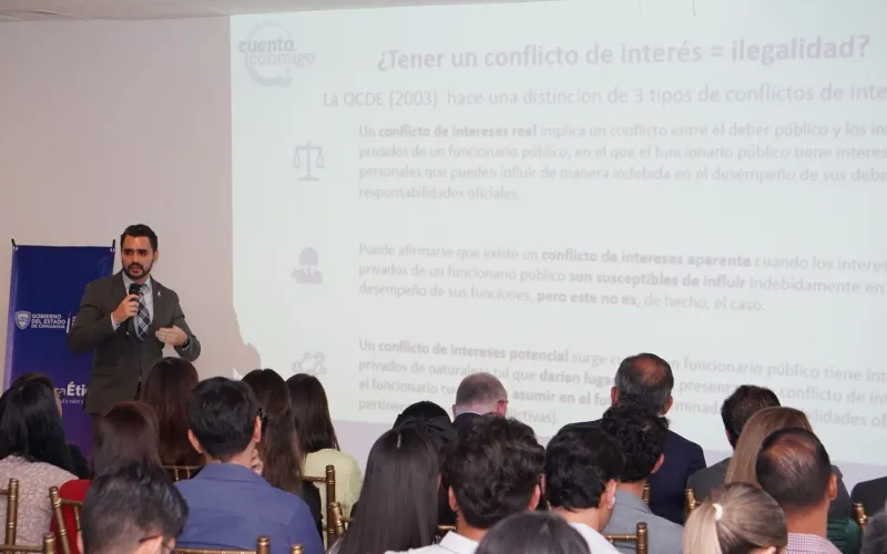 “Hablar de conflicto de interés no es un tema menor. Es un fenómeno que, si no se identifica y atiende a tiempo, puede afectar la objetividad y la confianza que la ciudadanía deposita en nosotros como servidores públicos”, subrayó.