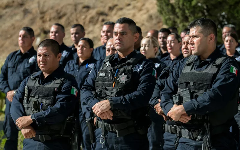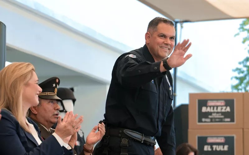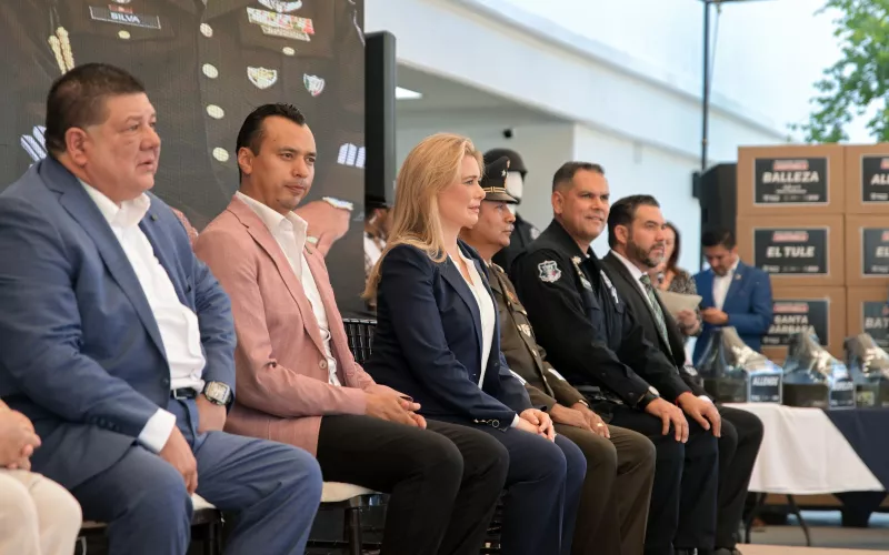 Como parte de la ceremonia, la Gobernadora Maru Campos entregó uniformes a las policías municipales de: Huejotitán, Balleza, Allende, Morelos, Rosario, Batopilas, San Francisco de Oro, Parral, Guachochi, Guadalupe y Calvo, Santa Bárbara, El Tule, Matamoros, Valle de Zaragoza y Coronado.