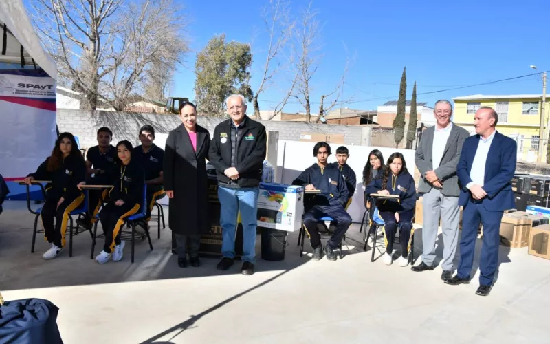 Agregó que estas instalaciones y la entrega de materiales, son testimonio del compromiso continuo de un gobierno humanista como el que encabeza la gobernadora Maru Campos, que brinda educación de calidad.