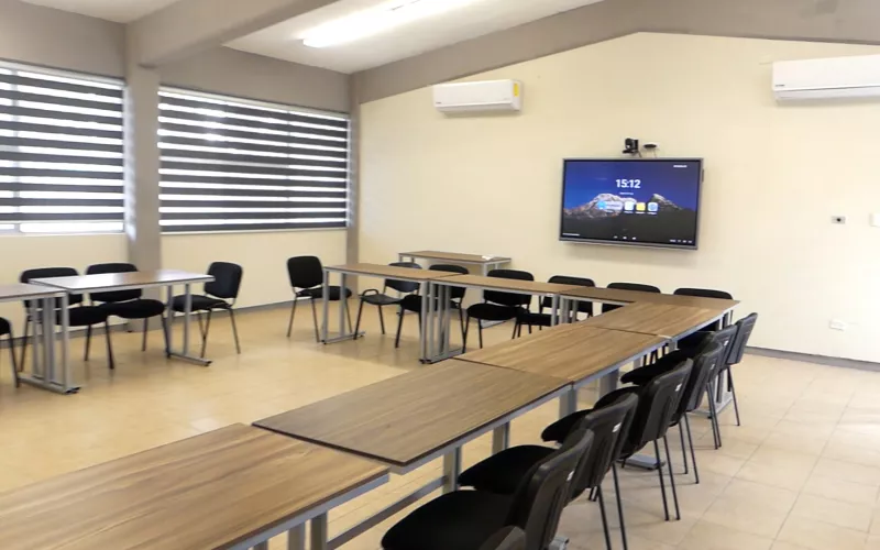 Asimismo, en el plantel Chihuahua II se inauguró una sala inteligente, la cual fue donada por la empresa SYSCOM, misma que cuenta con una cámara panorámica para uso en sesiones de trabajo y una pantalla interactiva inteligente.