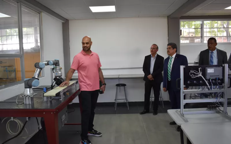 Este nuevo espacio cuenta con controladores lógicos programables marca SIEMENS, pantallas táctiles HMI y un brazo robótico colaborativo de cinco ejes, con un costo total de inversión de 2 millones 968 mil 648 pesos.