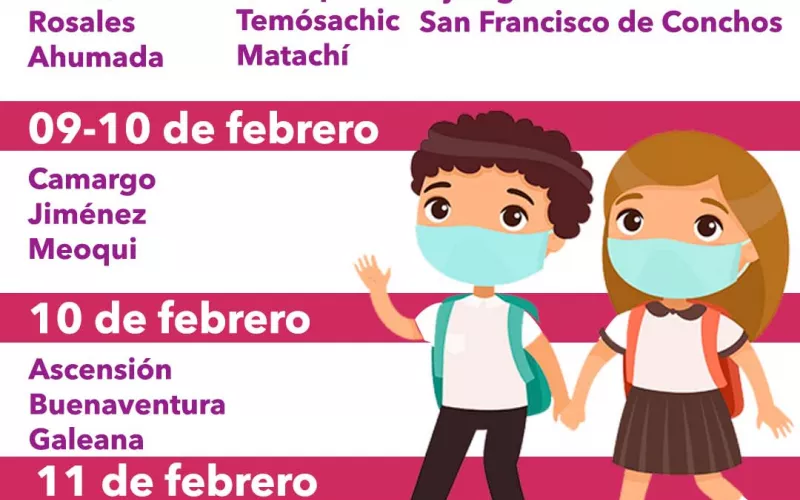 El 9 de febrero se aplicarán primeras dosis a adolescentes de 14 años y segundas dosis al grupo etario de 15 a 17, en los municipios de Cusihuiriachi, Riva Palacio, Julimes, La Cruz, Rosales, Ahumada, Saucillo, Guerrero, Madera, Ocampo, Temósachic, Matachí, Janos, Coyame, Manuel Benavides, Ojinaga y San Francisco de Conchos.