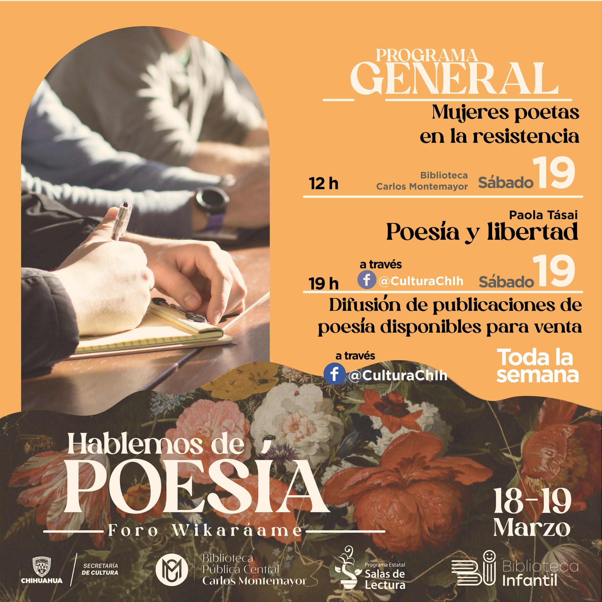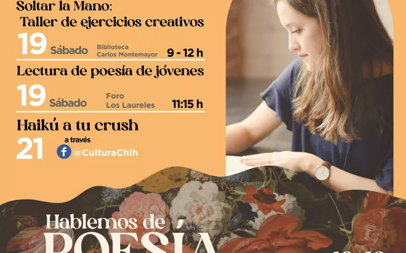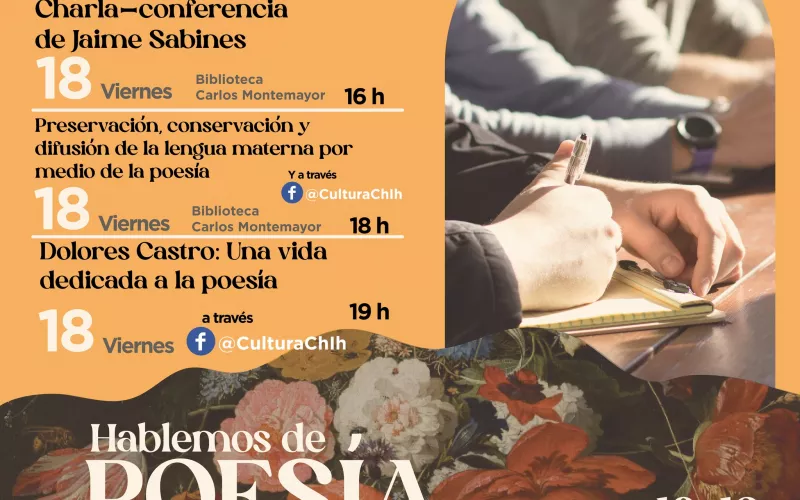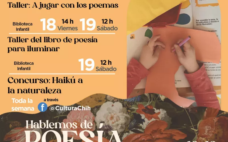 La Secretaría de Cultura del Estado de Chihuahua invita a las y los ciudadanos a participar en las actividades del programa “Hablemos de Poesía”, el cual se realiza en el marco del Día Internacional de la Poesía con un programa de actividades los días viernes 18 y sábado 19 de marzo.