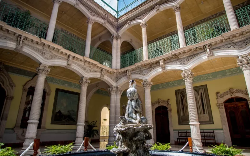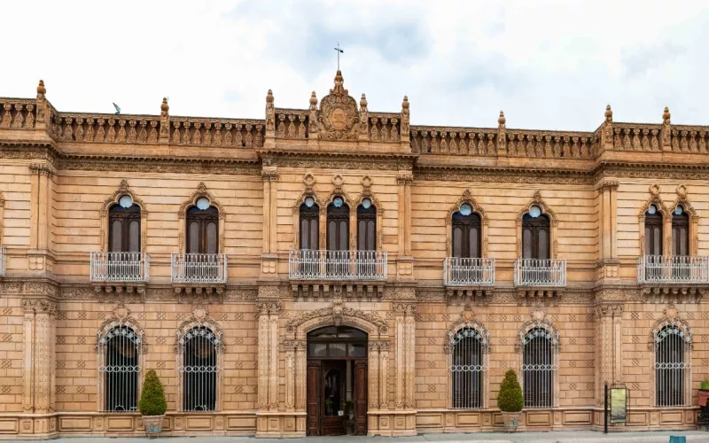 El Centro Cultural Palacio Alvarado se encuentra ubicado en la calle Riva Palacio N° 2, en el Centro Histórico de Parral.