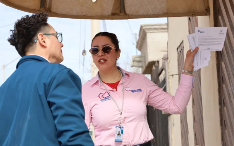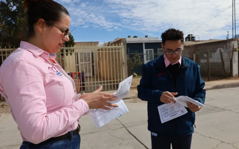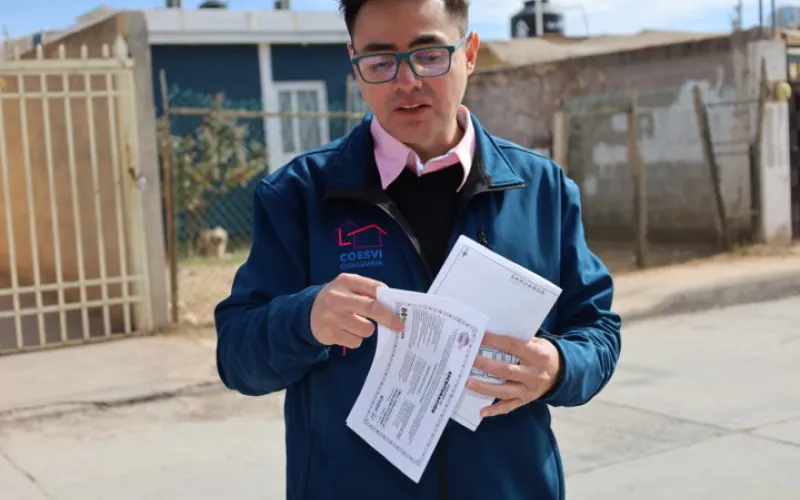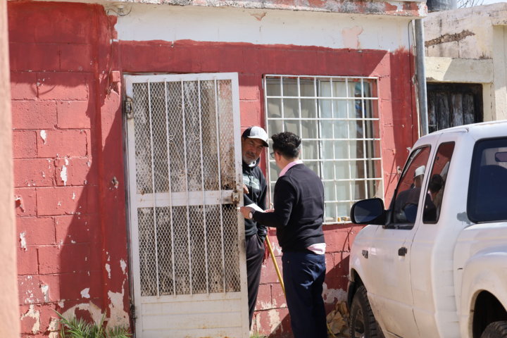 Personal de la Comisión Estatal de Vivienda, Suelo e Infraestructura de Chihuahua (Coesvi), en recorrido por la colonia Sahuaros, en la capital, invitó a las familias a aprovechar los beneficios que ofrece el programa “Juntos escrituramos tu vivienda”.