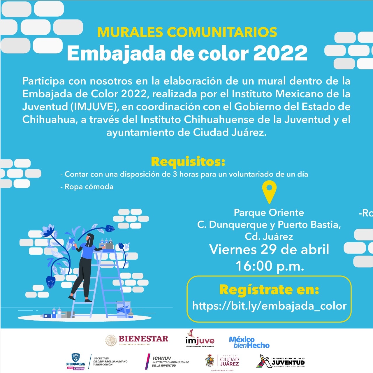 Este proyecto forma parte de las actividades del Instituto Mexicano de la Juventud (IMJUVE) a través de la Embajada de Color 2022, cuyos proyectos se extienden por todo el país, en coordinación con la asociación México Bien Hecho, y donde participa en esta ocasión el Gobierno Municipal de Ciudad Juárez.