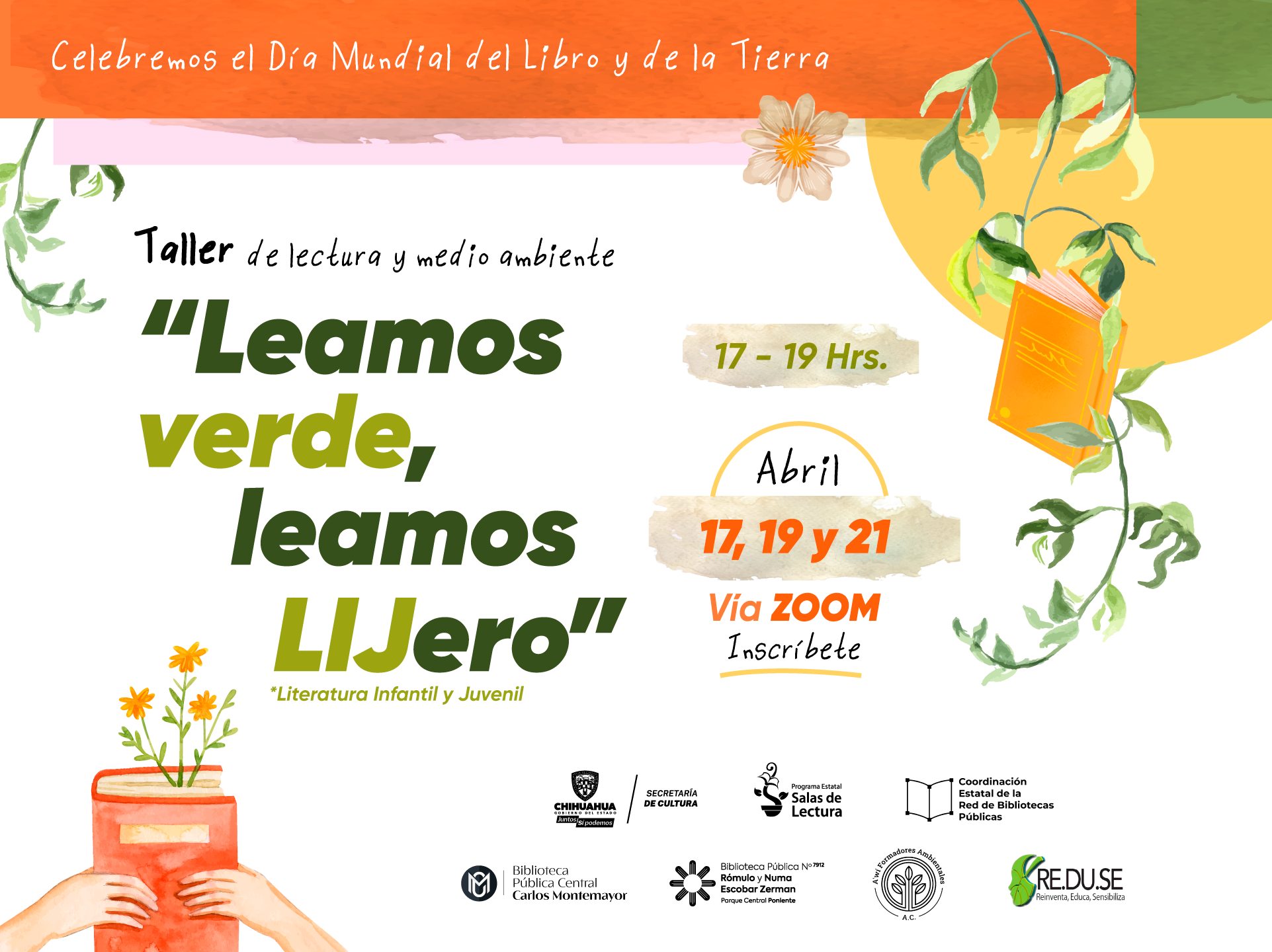 En el marco del Día Internacional de la Tierra y el Día Mundial del Libro, la Secretaría de Cultura del Estado de Chihuahua, a través del Programa de Salas de Lectura, abre inscripciones para el taller virtual “Leamos verde, leamos LIJero”dirigido a mediadores y mediadoras de lectura, personal bibliotecario así como personas encargadas de espacios de lectura,