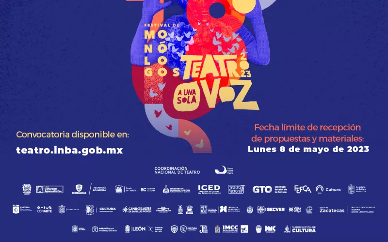 La Secretaría de Cultura Federal en coordinación con la Secretaría de Cultura del Estado, a través del Instituto Nacional de Bellas Artes y Literatura (INBAL), mediante la Coordinación Nacional de Teatro, convoca a la comunidad teatral nacional a participar en el 18° Festival de Monólogos-Teatro a Una Sola Voz 2023.