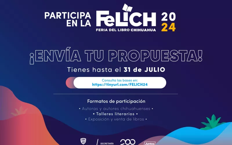 La Secretaría de Cultura de Chihuahua invita a escritores, talleristas y casas editoriales, a participar en la Feria del Libro de Chihuahua (Felich) en su edición 2024, un evento que celebra y promueve el talento literario de la región.