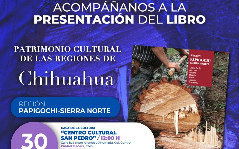 La Secretaría de Cultura invita a la población de los municipios de Madera y Guerrero, a la presentación del nuevo volumen de la colección editorial “Raíz de Desierto”, enfocado en la región Papigochi-Sierra Norte, del estado de Chihuahua.