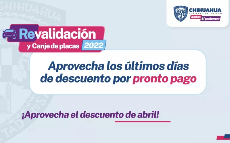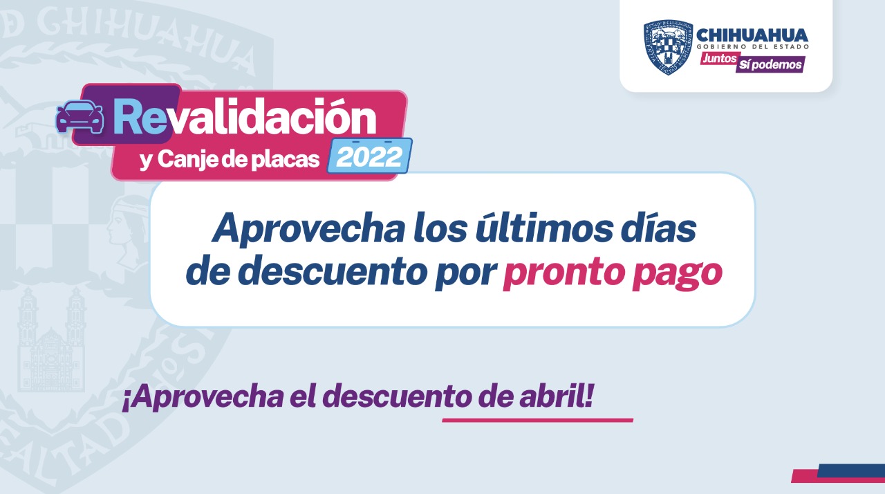 El Gobierno del Estado, a través de la Secretaría de Hacienda, hace un llamado a los contribuyentes de toda la entidad que aún no han cubierto el pago correspondiente por Revalidación Vehicular, a que aprovechen el beneficio por pronto pago que finaliza este sábado 30 de abril.