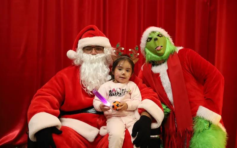 Las niñas y los niños, acompañados de sus familias, se tomaron fotografías con Santa Claus y El Grinch, además de disfrutar de dulces, alimentos y una sorpresa que se les preparó especialmente.